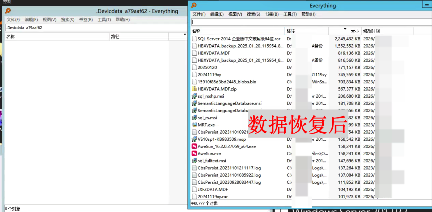 数据库修复:将损坏的SQL数据库拆解为万个“数据页”,剔除坏页,重组索引,成功找回95%以上的核心业务记录。
