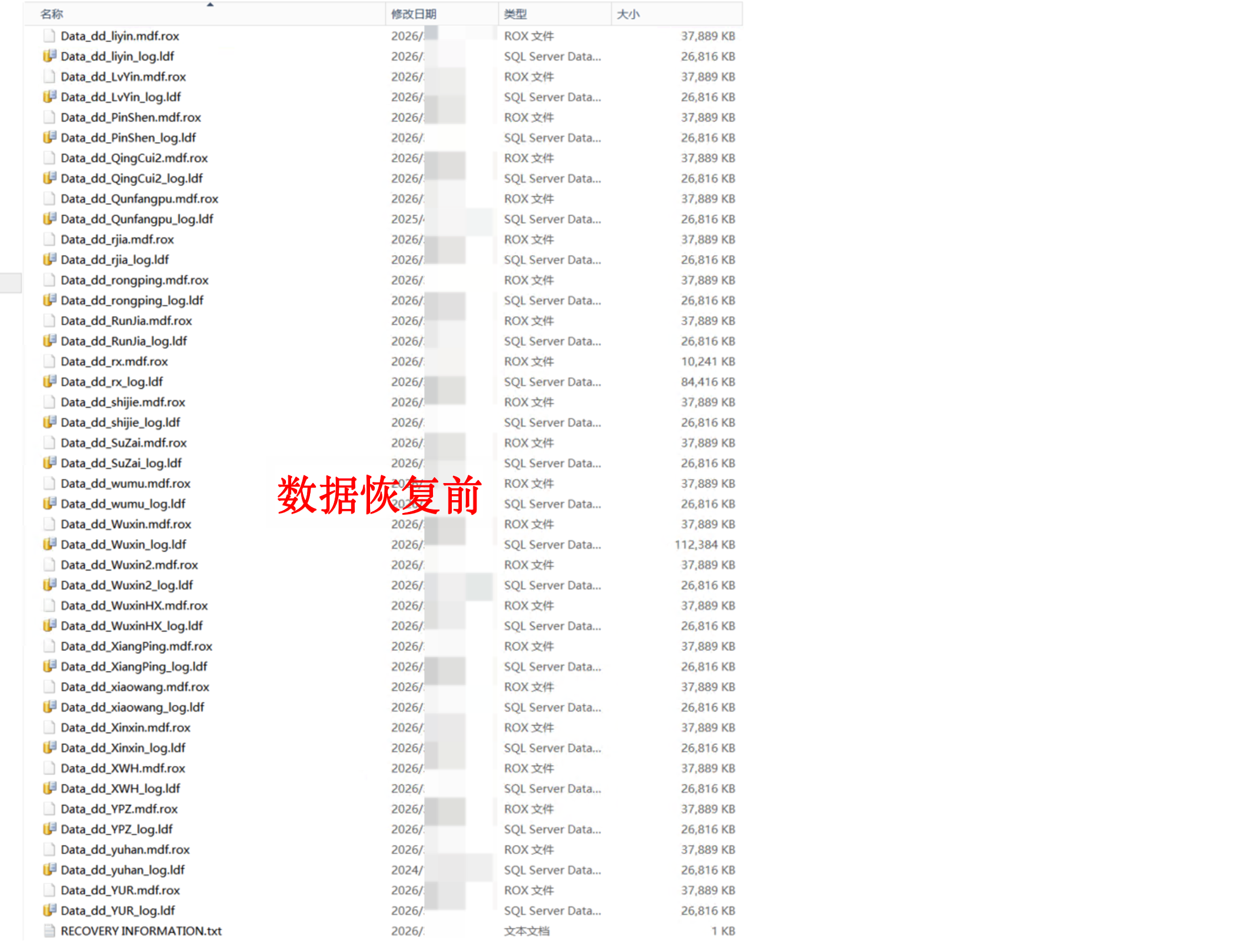 数据库服务(MSSQL, MySQL, Oracle)无法启动。1Dt91数据恢复-勒索病毒数据恢复专家,.rox/.xor/.rx/888/baxia/bixi/wman/mkp