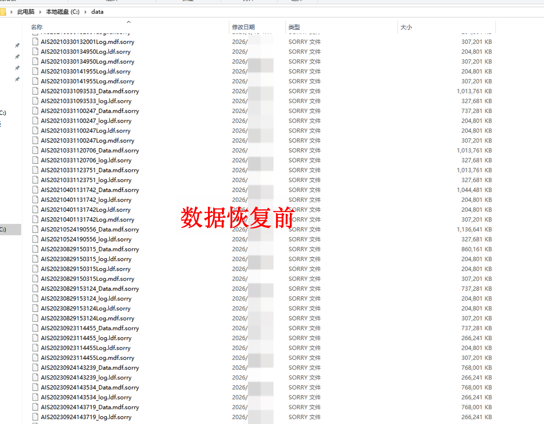 被.sorry勒索病毒加密后的数据恢复案例: